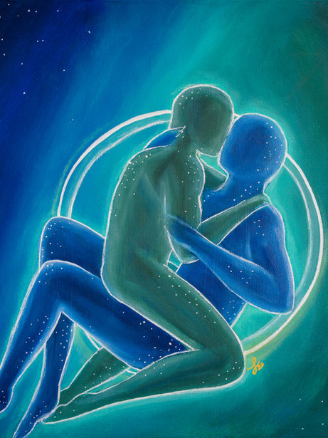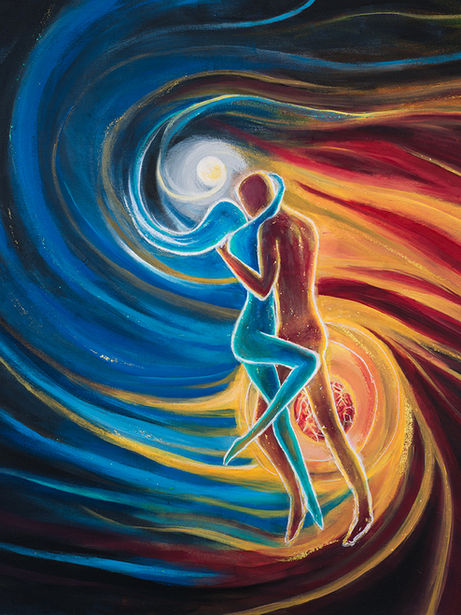 This therapeutic piece features the sacred feminine and divine masculine floating through space -or even another dimension- to show how the power of friendship and love can transcend time and space.